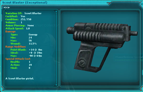 While lacking the punch of its heavier cousins, the blaster pistol is not to be underestimated in combat.
